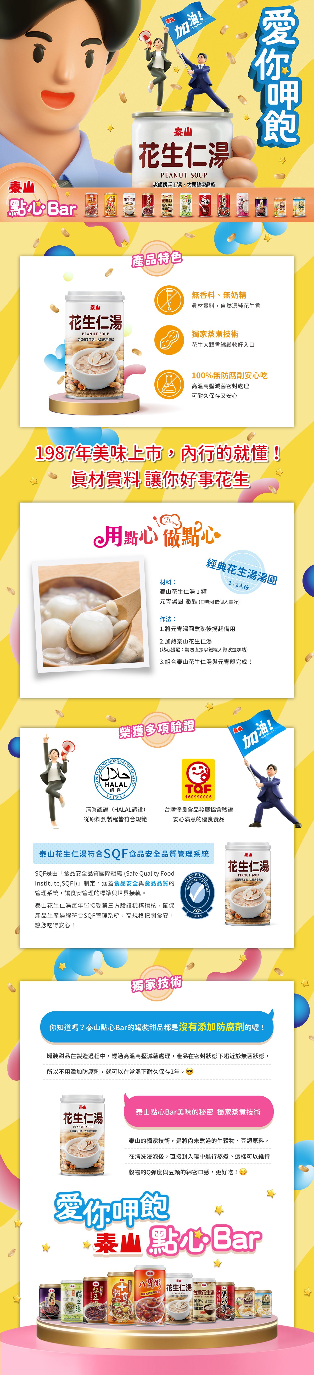 - 泰山花生仁湯,綿密花生在口中融化,帶來幸福的滋味,口感豐富有層次。
