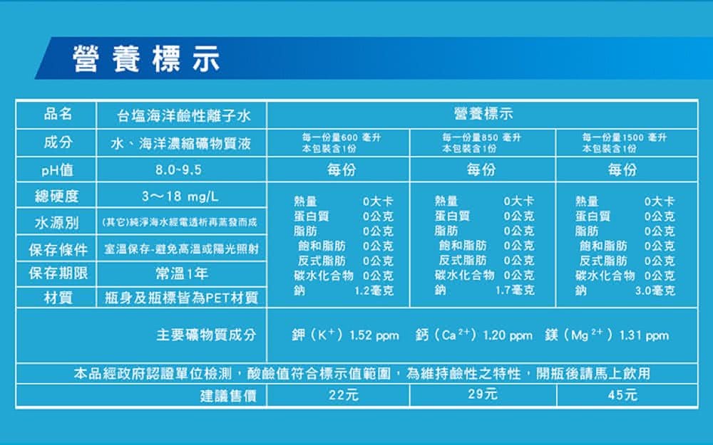 - 台塩生技鹼性水,口感清爽,解渴效果極佳,隨時補充水分,保持身體健康活力。