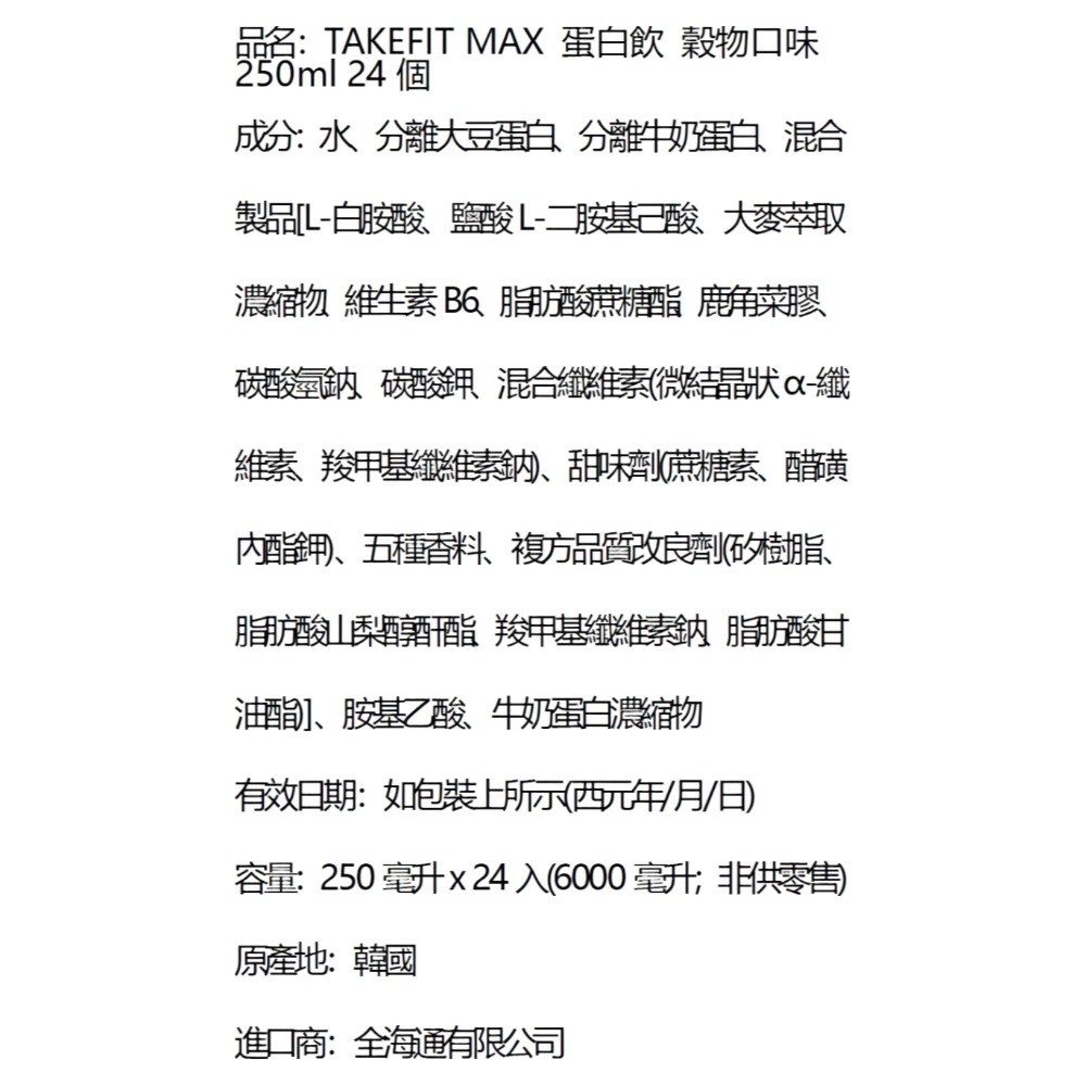 takefit MAX蛋白飲穀物口味,是您健康生活的好夥伴。每罐含有24克的蛋白質,能有效補充每日所需,同時提供穀物風味,口感豐富。這款蛋白飲不僅適合運動後飲用,幫助肌肉修復,也是忙碌生活中快速補充營養的理想選擇。低脂配方,讓您享受美味無負擔,隨時隨地都能輕鬆補充蛋白質,維持健康活力。