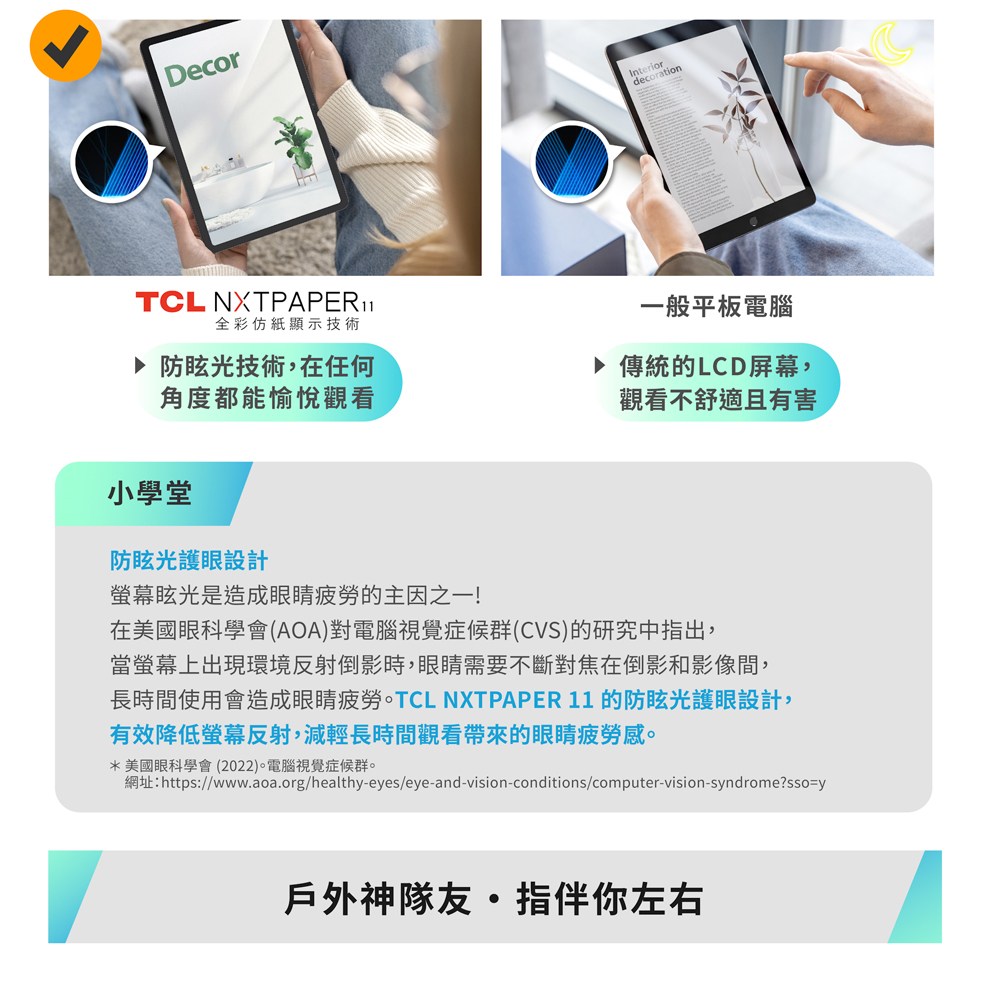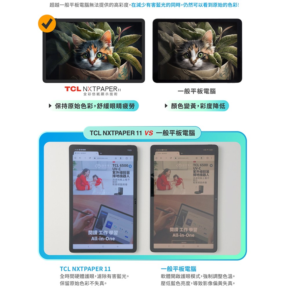 TCL NXTPAPER 11護眼平板,採用11吋大螢幕,提供寬廣的視覺體驗,無論追劇、遊戲或工作,都能享受清晰細膩的畫面。搭載NXTPAPER護眼技術,有效降低藍光,長時間使用也能保護眼睛,減少疲勞感。內建4GB記憶體和128GB儲存空間,運行流暢,大型檔案也能輕鬆儲存。輕薄機身設計,方便攜帶,隨時隨地享受影音娛樂與行動辦公。是您工作、學習、娛樂的最佳夥伴。