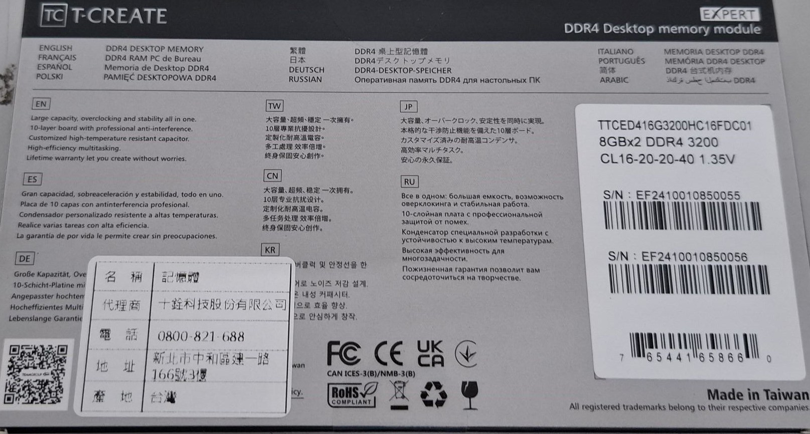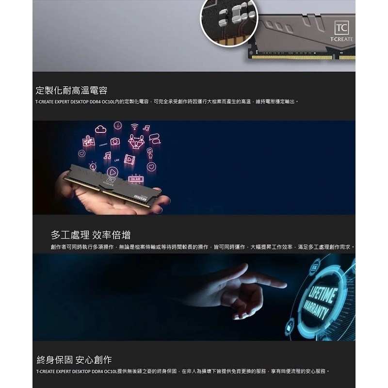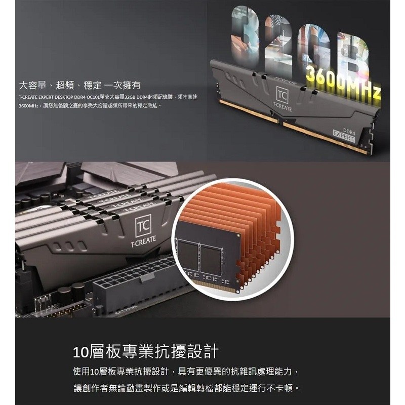 TEAMGROUP 十銓 T-FORCE T-CREATE EXPERT 引領者 DDR4-3200, 16GB (2x8GB) 桌上型記憶體, 1組