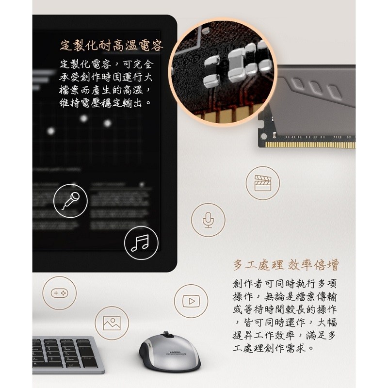 - - 採用高品質顆粒,確保記憶體模組的穩定性與可靠性,延長使用壽命。