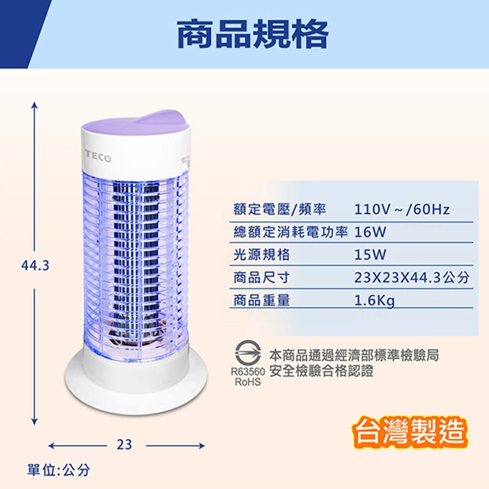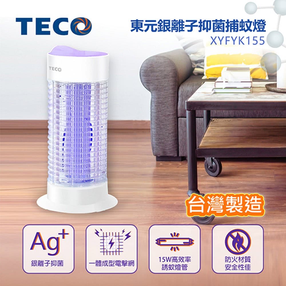 TECO 東元銀離子抑菌捕蚊燈 XYFYK155,為您打造潔淨無蚊的居家環境,有效抑制細菌滋生,同時利用15W高效誘蚊燈管,360度全方位誘捕蚊蟲。底座、集蚊盒、電擊網固定座均採用防火材質,安全可靠。適用於臥室、客廳、玄關等多種場所,讓您安心享受寧靜舒適的生活。台灣製造,品質保證。