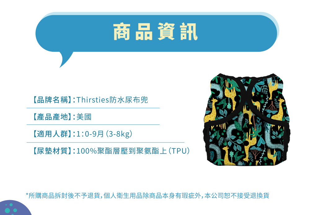THIRSTIES 壓扣防水尿布兜 1號 0-9個月 3-8kg, Stand Tall, 1件