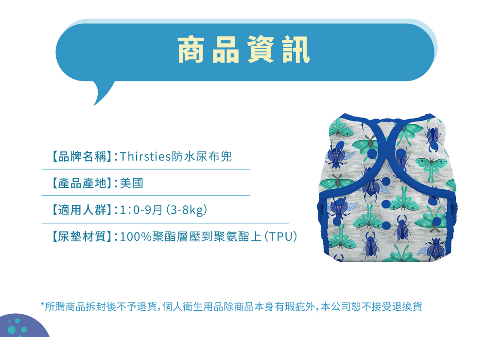 THIRSTIES 壓扣防水尿布兜 1號 0-9個月 3-8kg, Arthropoda..., 1件