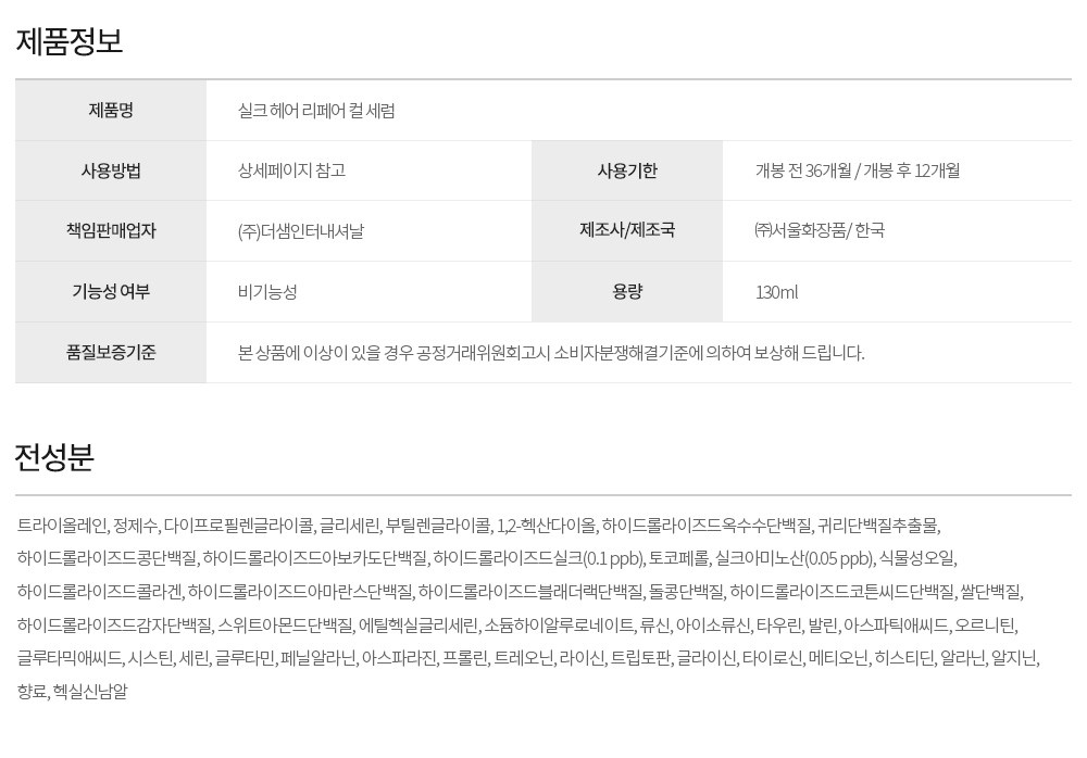 | 使用注意事項 | A. 使用化妝品時或使用後,若因陽光直射,使用部位出現紅斑、腫脹、發癢等異常症狀或副作用,請諮詢專科醫師等。 B. 請勿用於傷口等部位。 C. 保管及使用注意事項 1) 請將本品放在兒童無法接觸的地方 2) 避免陽光直射 4. 若進入眼睛,請立即清洗 | 保存期限/有效日期 | 由於本產品是從配送中心直接發送的產品,因此生產日期和有效期信息每次都會更改,因此請參閱上面的有效期信息。 |
