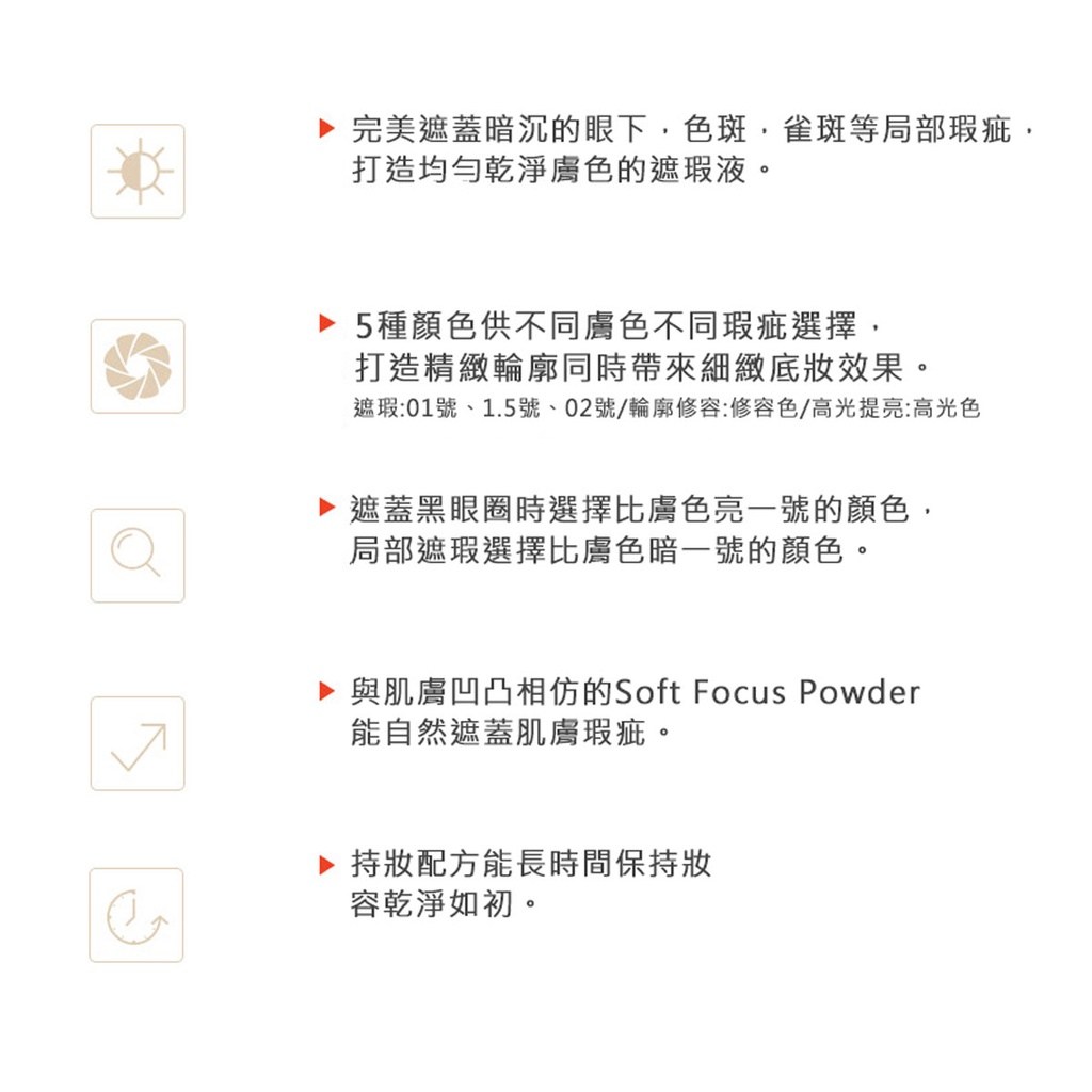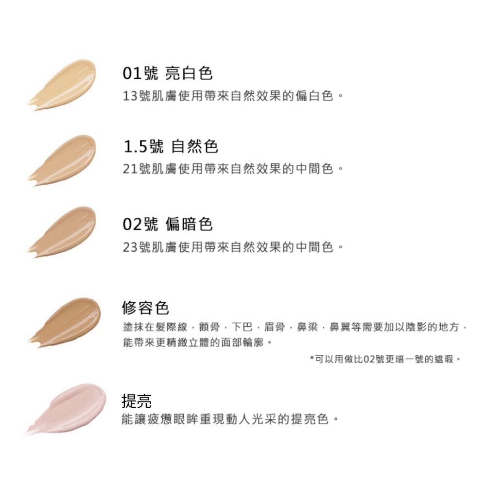 - 提亮膚色配方,有效遮蓋黑眼圈、痘印等瑕疵,展現明亮光采。