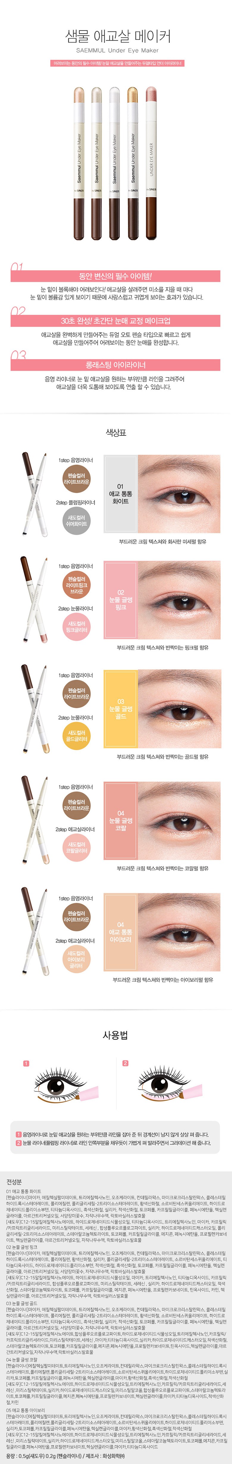 THe SaeM 得鮮 Saemmul臥蠶筆,雙頭設計讓您輕鬆擁有迷人臥蠶。一頭是陰影筆,勾勒出自然陰影,另一頭是提亮筆,點亮臥蠶,讓雙眼更加立體有神。柔滑的質地,完美貼合眼部肌膚,妝感持久不暈染。多種色號可選,無論是日常淡妝還是派對妝容,都能輕鬆駕馭,讓您時刻綻放自信光彩。
