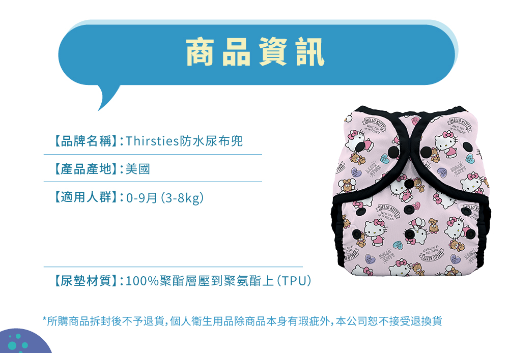 THiRSTiES 壓扣防水尿布兜 SANRIO聯名款 1號 3-8kg, Hello Kitt..., 4件