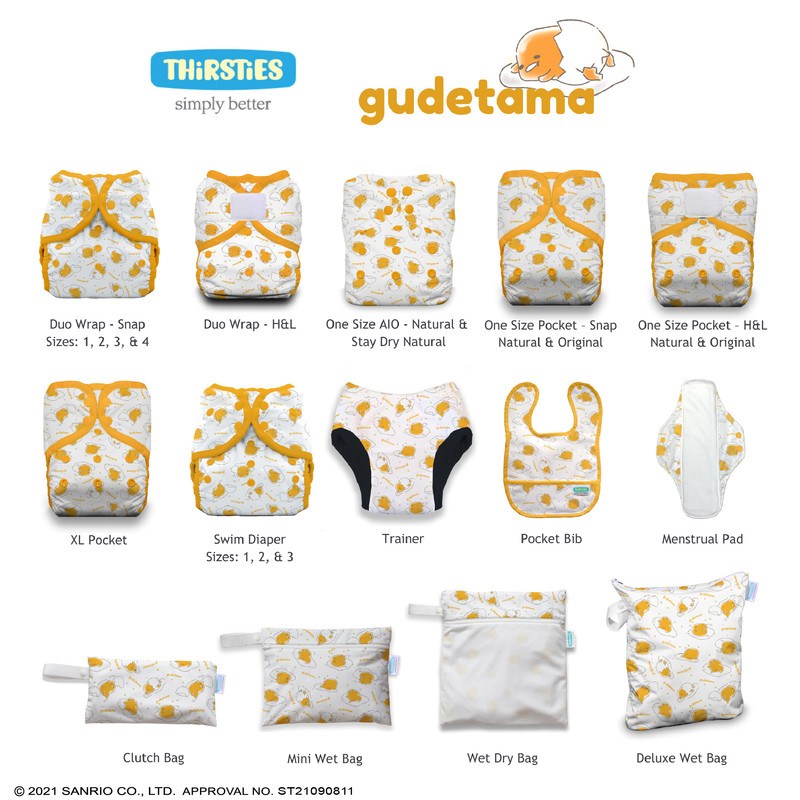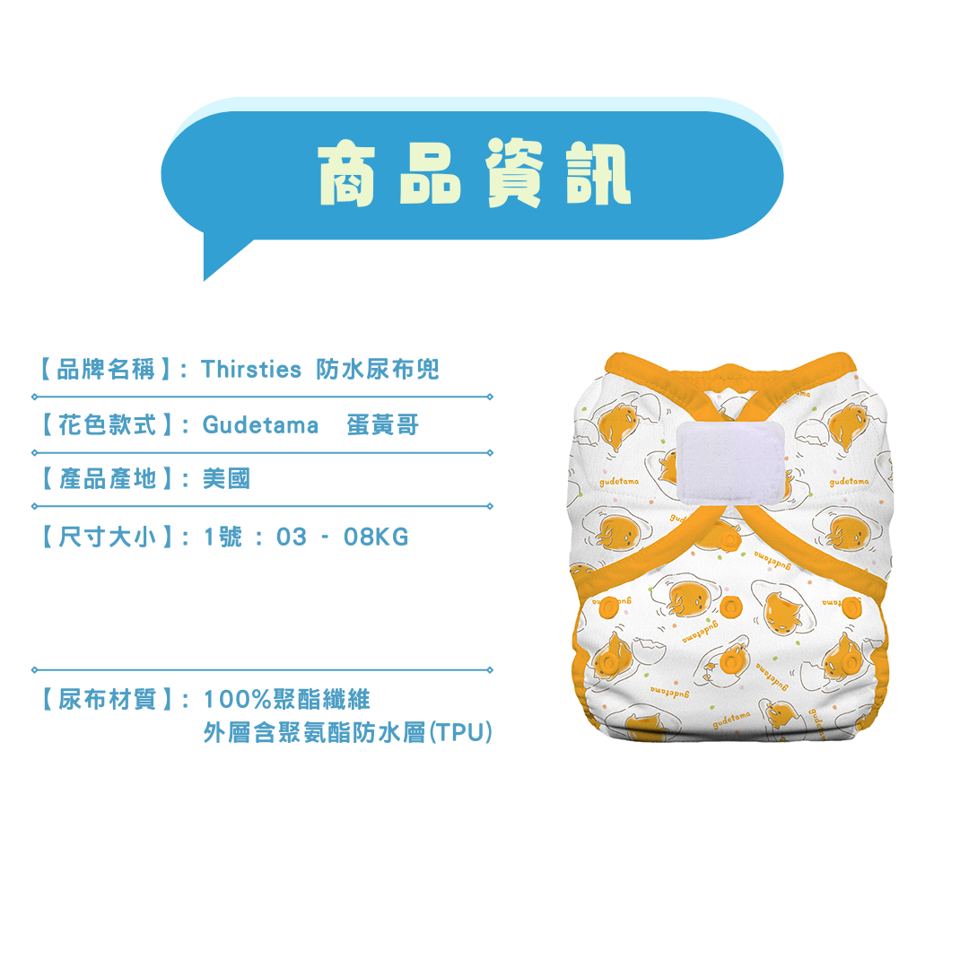 THiRSTiES 防水魔鬼氈尿布兜 SANRIO聯名款 3-8kg, Gudetama 蛋..., 3件