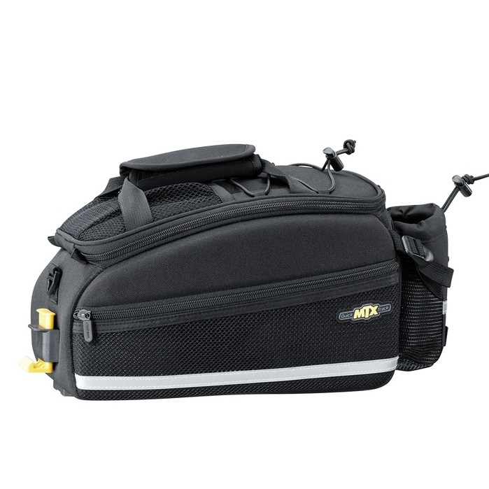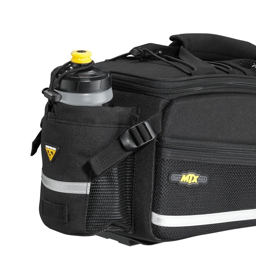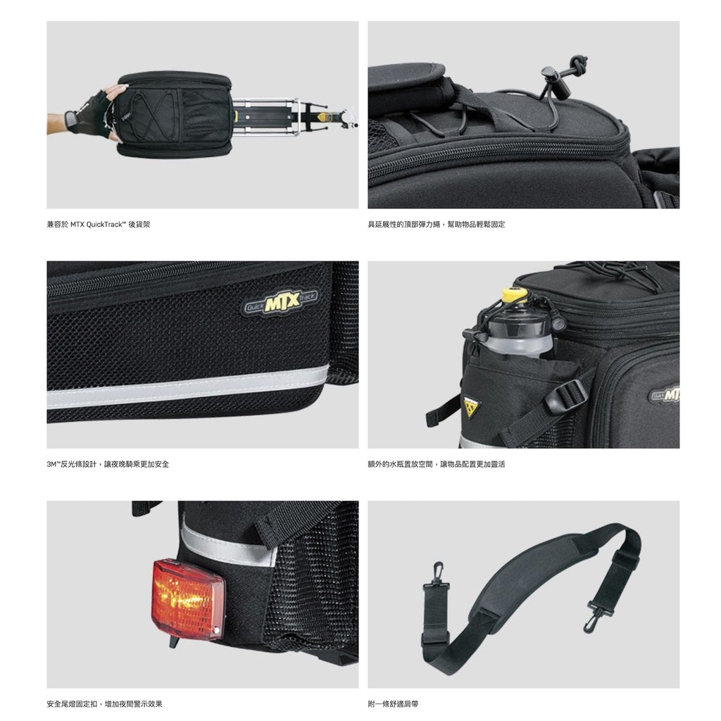 TOPEAK MTX TrunkBag EX 後旅行袋是您自行車旅行的理想伴侶。這款後貨架包採用耐用的尼龍布和工程塑料製成,堅固耐用,可應對各種天氣條件。MTX QuickTrack™ 系統讓您可以輕鬆地將其安裝到相容的後貨架上,無需任何工具。3M™ 反光條設計提高了夜間騎行的安全性,讓您在低光環境中更加顯眼。此外,它還配有額外的水瓶放置空間,方便您隨時補充水分,頂部彈力繩則有助於固定物品,確保您的物品安全穩固。無論是短途旅行還是長途探險,這款旅行袋都能滿足您的需求,讓您的騎行體驗更加舒適和便捷。