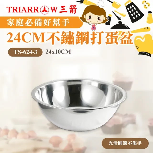 TRIARROW 三箭牌 304 不鏽鋼打蛋盆, 24cm, TS-624-3, 1個