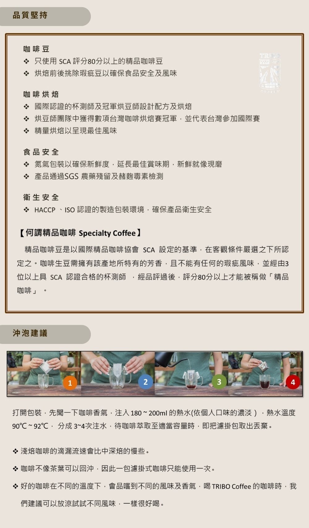 - 濾掛式設計,讓您隨時隨地輕鬆享受一杯香醇濃郁的精品咖啡。