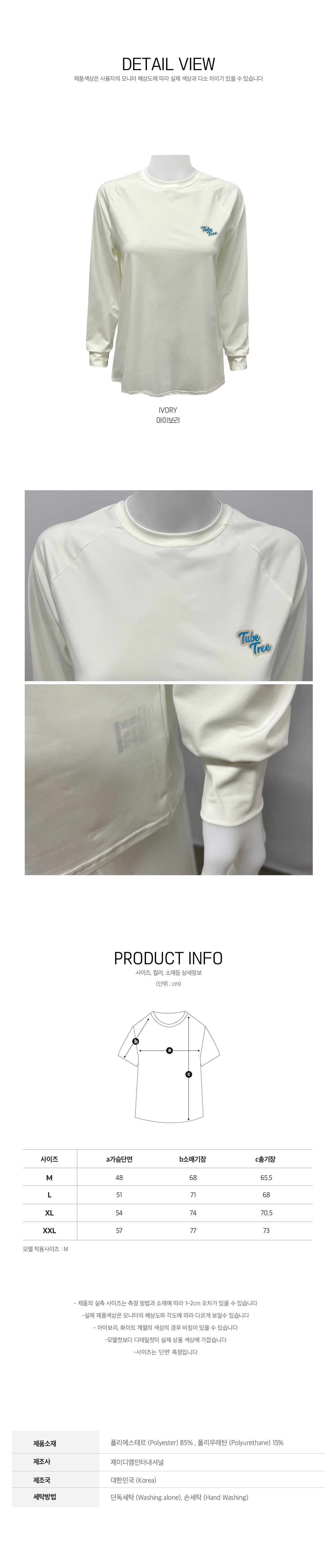 TUBE TREE女式防曬上衣,採用韓國製造的優質布料,具有極佳的彈性和舒適度。象牙色系的簡約設計,適合各種場合穿著,無論是游泳、健身還是日常休閒,都能展現您的時尚品味。此款上衣具有防曬功能,有效保護您的肌膚免受紫外線傷害。四向彈力布料讓您活動自如,無拘束感。精緻的四針六線縫紉技術,確保穿著的舒適性和耐用性。