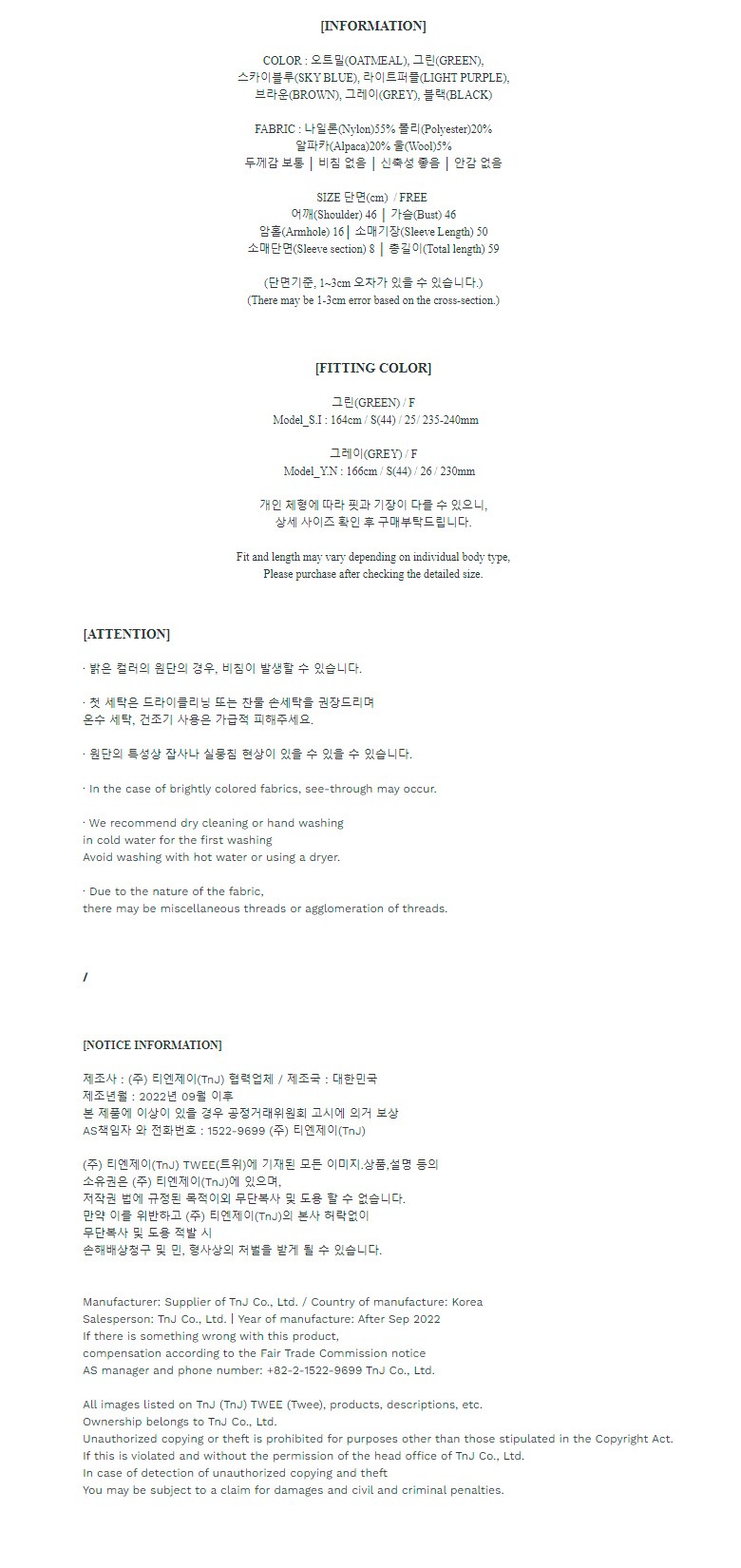 - 價格、賣家、換貨/退貨及配送等與商品本身無關的咨詢請使用客服中心的1:1咨詢。