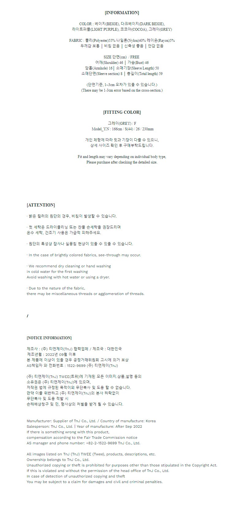 - 價格、賣家、換貨/退貨及配送等與商品本身無關的咨詢請使用客服中心的1:1咨詢。