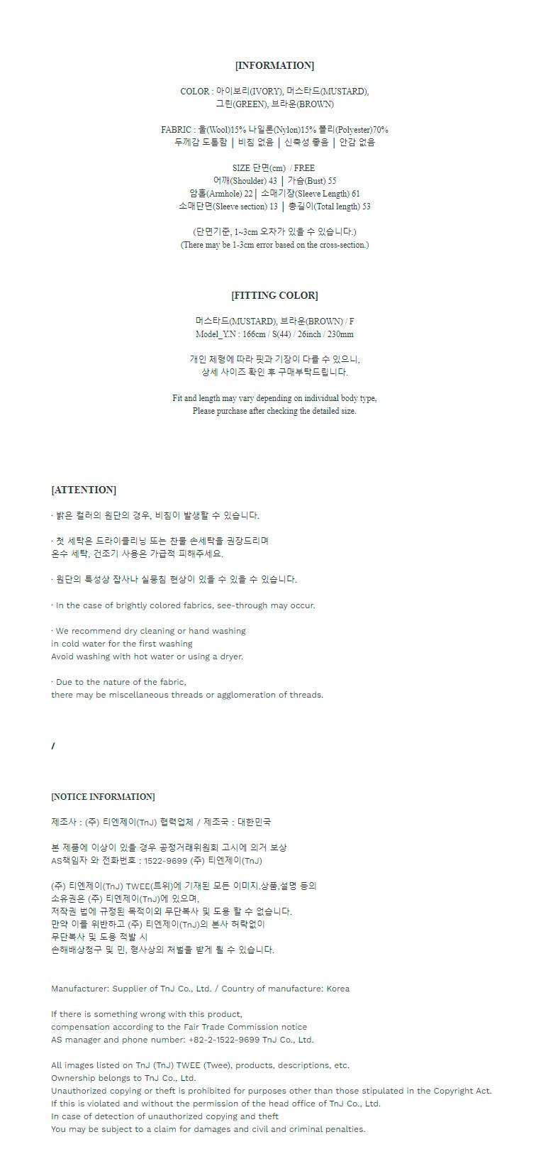 - 價格、賣家、換貨/退貨及配送等與商品本身無關的咨詢請使用客服中心的1:1咨詢。