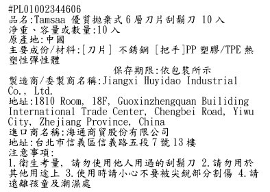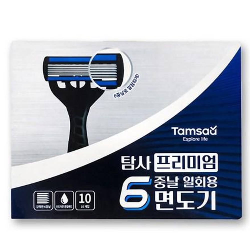 Tamsaa 優質拋棄式6層刀片刮鬍刀,為您帶來極致順滑的刮鬍體驗。每盒包含10支獨立包裝的刮鬍刀,方便衛生,適合旅行或日常使用。採用6層不鏽鋼刀片設計,能更貼合肌膚,減少刺激,讓您輕鬆擁有乾淨清爽的儀容。刀片鋒利耐用,搭配符合人體工學的PP塑料/TPE熱塑性彈性體握柄,提供舒適穩定的握感。無論是快速整理儀容,還是精細修整鬍鬚,Tamsaa刮鬍刀都能滿足您的需求,讓您隨時展現自信魅力。