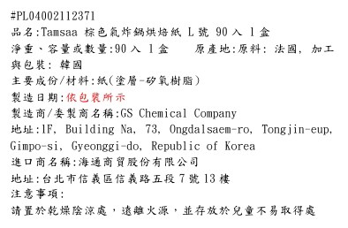 Tamsaa棕色氣炸鍋烘焙紙是您廚房的得力助手,專為氣炸鍋設計,讓您輕鬆烹飪出美味又健康的料理。採用食品級材質,安全無虞,耐熱溫度高達220℃,適用於各種氣炸鍋烹飪需求。L尺寸設計,方便放入各種尺寸的氣炸鍋,避免食材直接接觸鍋底,減少清潔的麻煩。每盒90張入,經濟實惠,是現代家庭廚房的必備用品。讓您享受烹飪的樂趣,同時保持廚房的清潔。