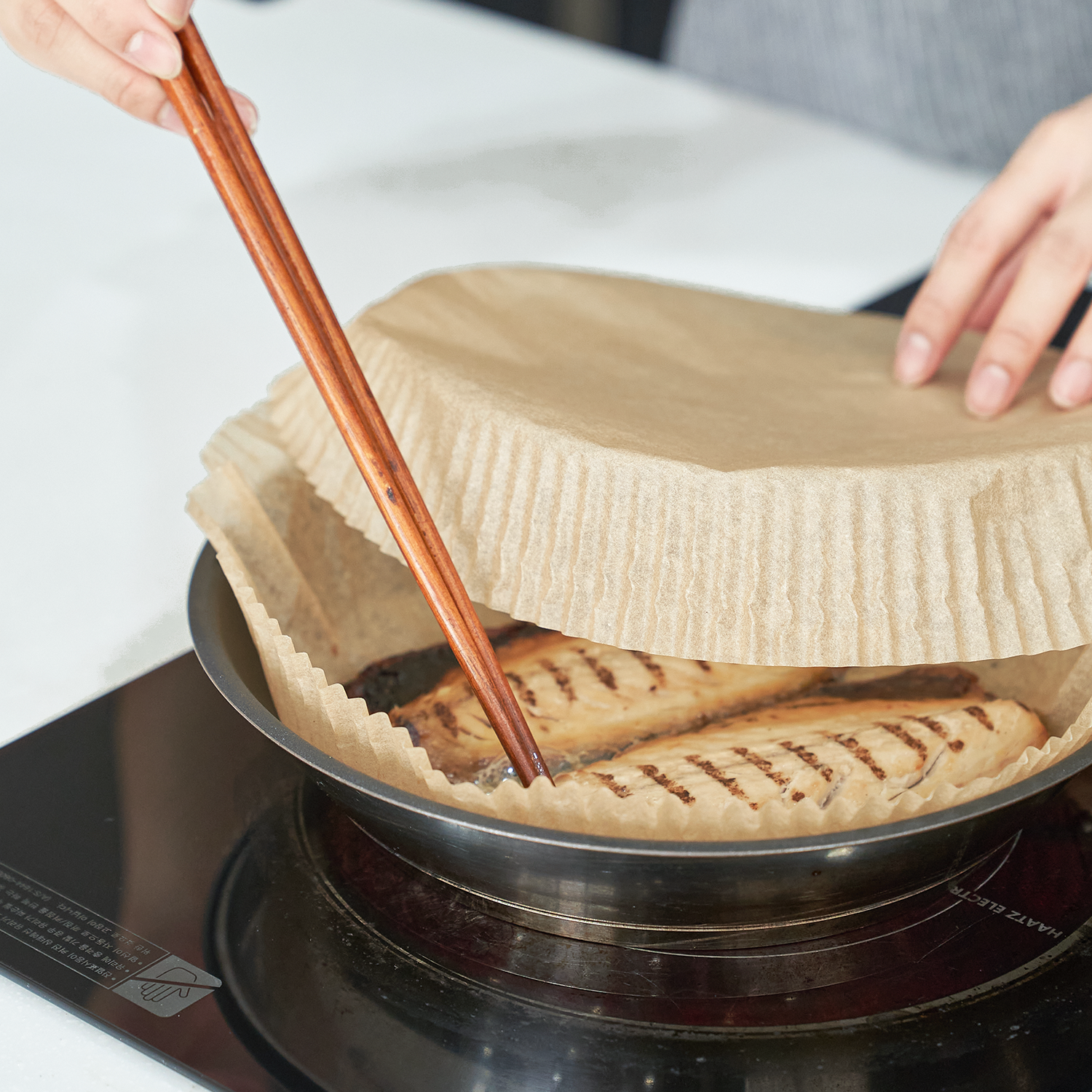 - 氣炸鍋烘焙紙採用棕色設計,烹飪後食材色澤更誘人,提升料理視覺享受。