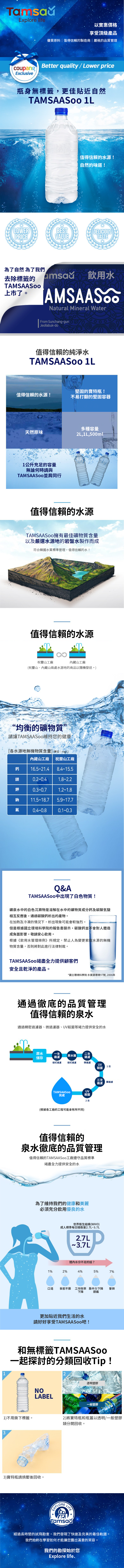 Tamsaa 無標籤天然水,來自值得信賴的純淨水源,讓您隨時享受自然的滋味,讓您買得安心、喝得放心,無標籤設計更貼近自然,同時也方便回收,確保每一滴水都安全且乾淨,為您提供值得信賴的飲用水選擇。無論是運動後補充水分,或是日常飲用。