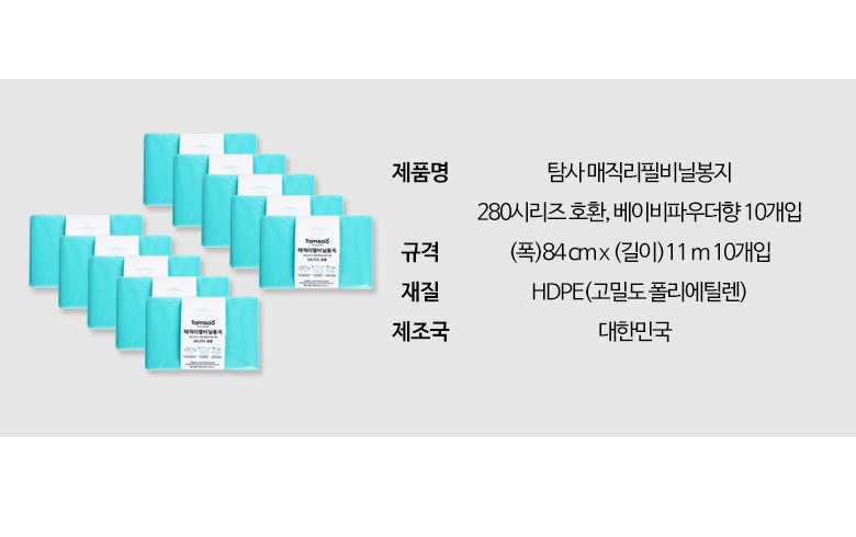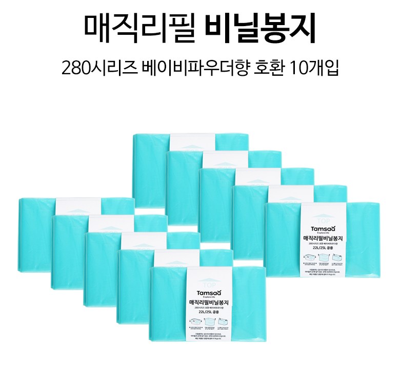 Tamsaa 280系列魔術補充垃圾袋,為您提供便利又衛生的垃圾處理方案。此款垃圾袋適用於22L/25L的垃圾桶,補充方便,輕鬆替換。獨特的嬰兒爽身粉香味,能有效中和垃圾異味,保持室內空氣清新。採用高品質HDPE材質,堅韌耐用,不易破裂,讓您使用。每組包含10卷補充袋,經濟實惠,是現代家庭的理想選擇。