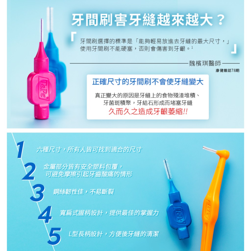 - 安全塑料包覆鋼絲,避免刮傷牙齦,保護牙齒琺瑯質,讓您安心使用,遠離牙齦不適。
