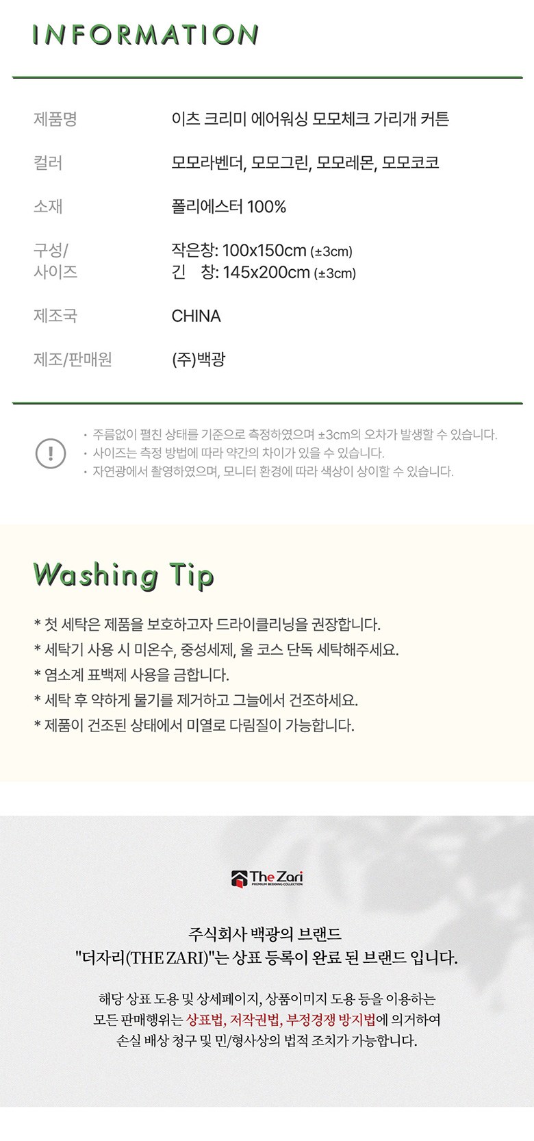 The Zari It's Creamy水洗格紋布簾,採用柔軟舒適的奶油空氣洗滌布料,觸感輕柔,帶來極致的居家體驗。清新的MOMO檸檬色格紋圖案,為您的空間增添一抹活潑氣息。穿桿式設計,安裝簡便,無需任何工具即可輕鬆完成。無論是遮擋陽光、分隔空間,還是作為裝飾,這款布簾都能滿足您的需求。讓The Zari It's Creamy水洗格紋布簾為您的家帶來溫馨與舒適。