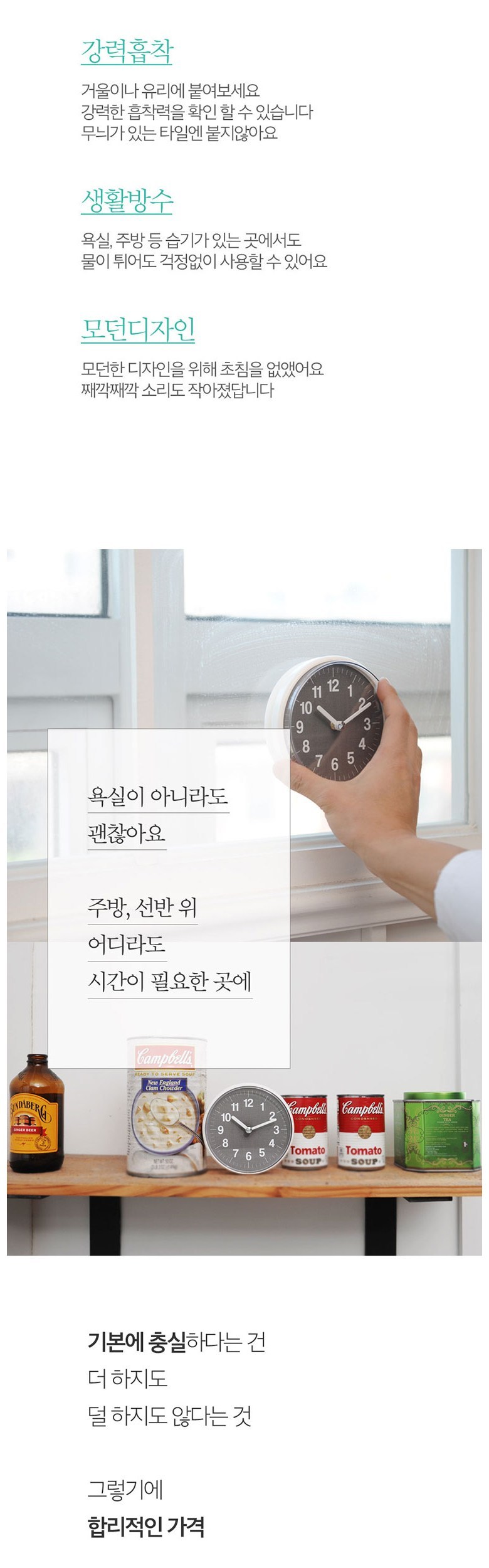 簡約設計,共有六種顏色可選,讓浴室增添不同的風格。有時候,生活的改變不需要大費周章,從浴室放個時鐘開始,就能感受不一樣的變化。再也不用擔心因為洗澡而錯過時間,輕鬆掌握沐浴時光。孩子也能在刷牙時,看著時鐘學習數字,一舉兩得。簡約時尚的外型,更能為浴室增添設計感,提升居家質感。生活中小小的改變,就從此刻開始!