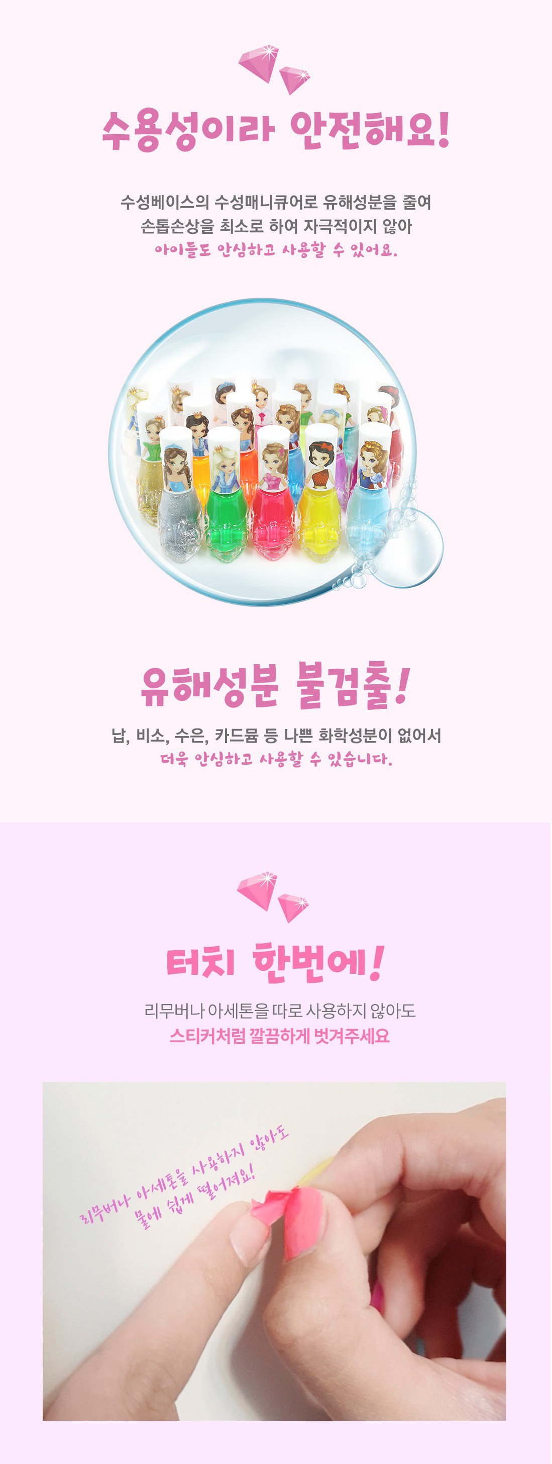 - 這款公主系列水性指甲油,讓孩子們盡情享受色彩樂趣,激發無限的想像力和創造力。