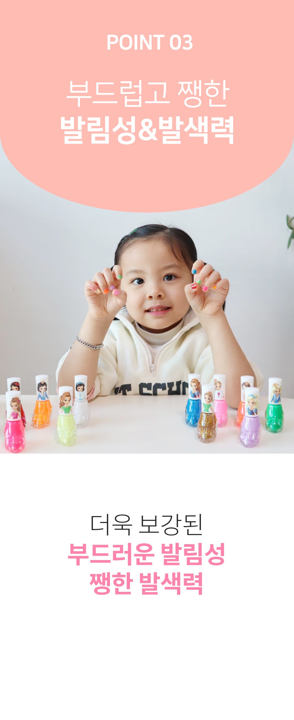 - 這款水性指甲油色彩鮮豔飽和,讓孩子們盡情享受指尖上的繽紛樂趣。