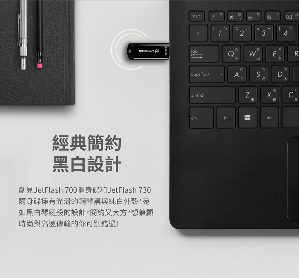 - 創見隨身碟,輕巧設計方便攜帶,隨時儲存重要文件。