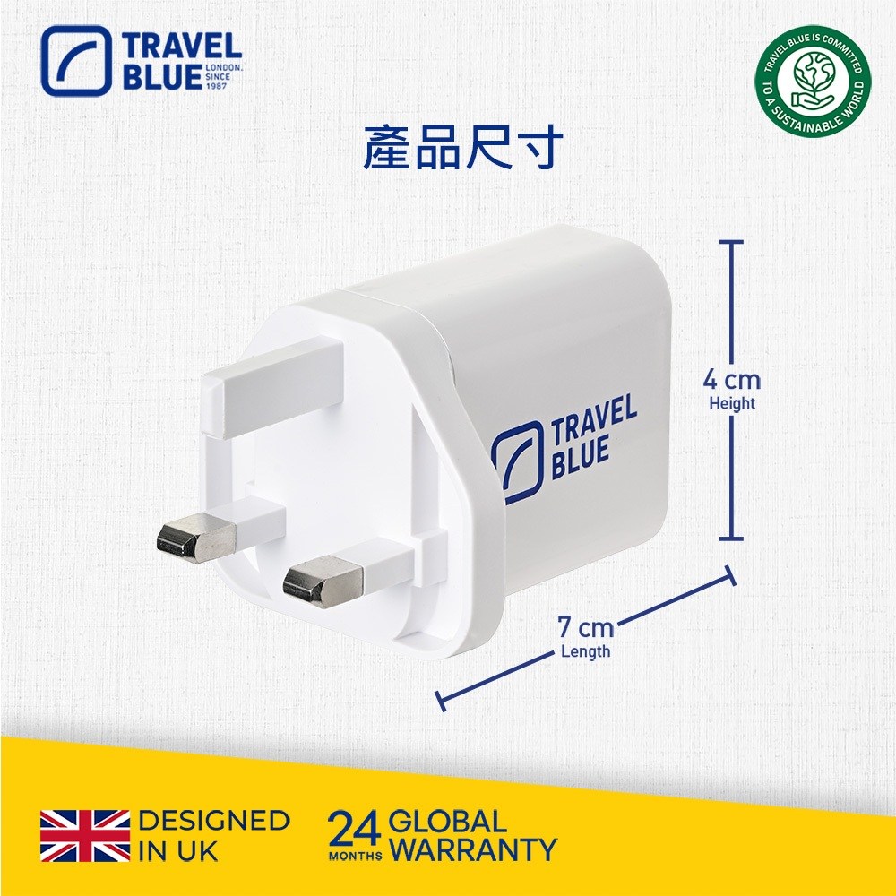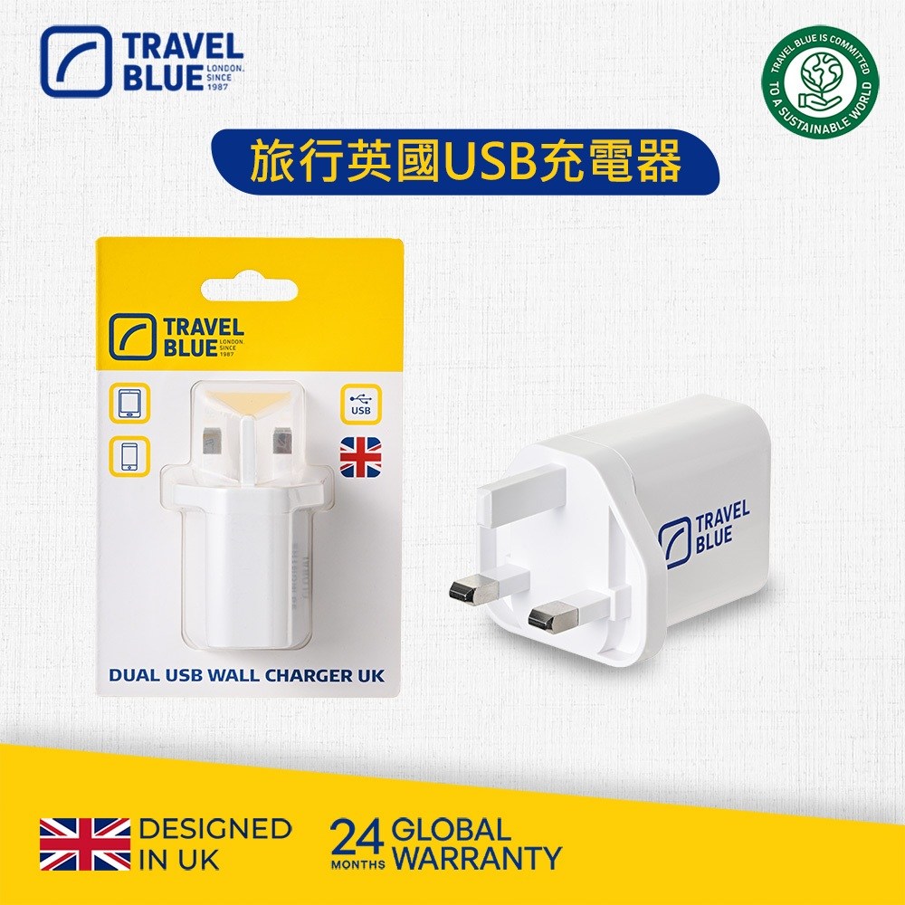 Travel Blue 英國藍旅 USB 雙孔轉接頭充電器 英國適用 壁式充電器, 6.3cm, TB964, 1個