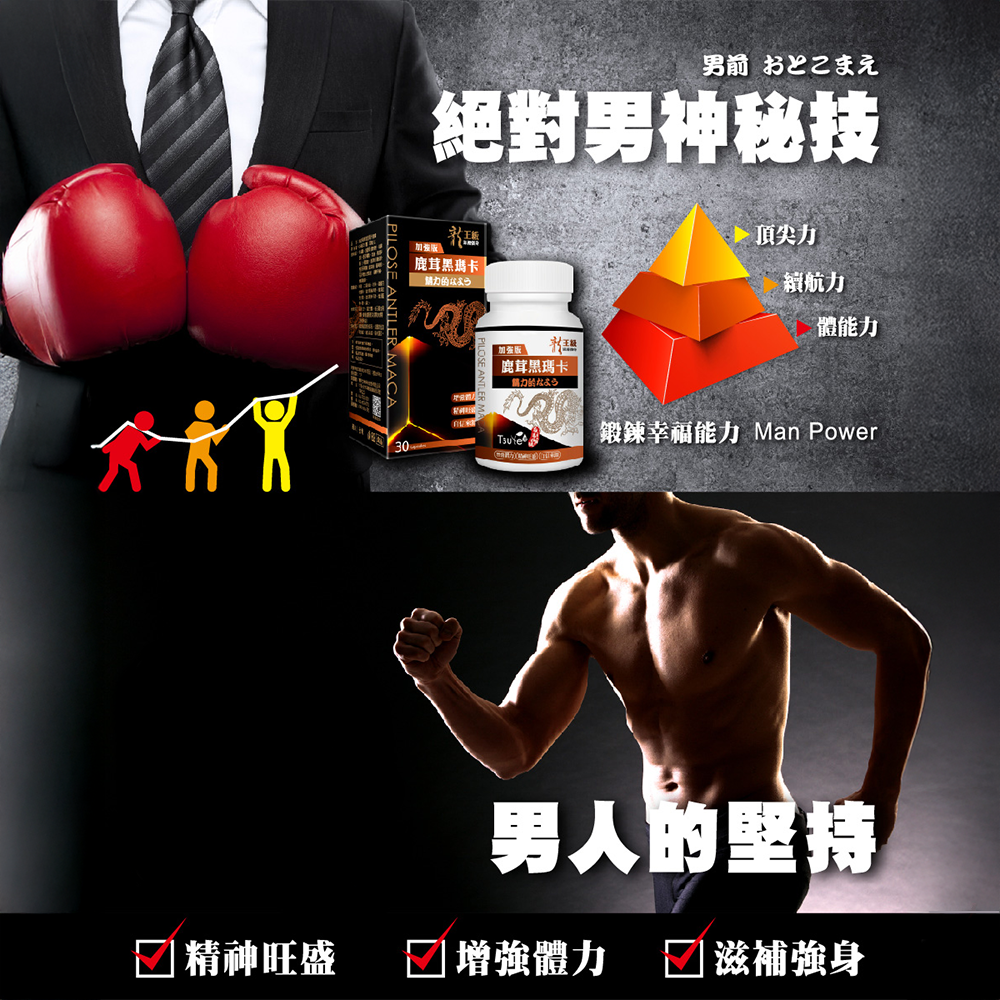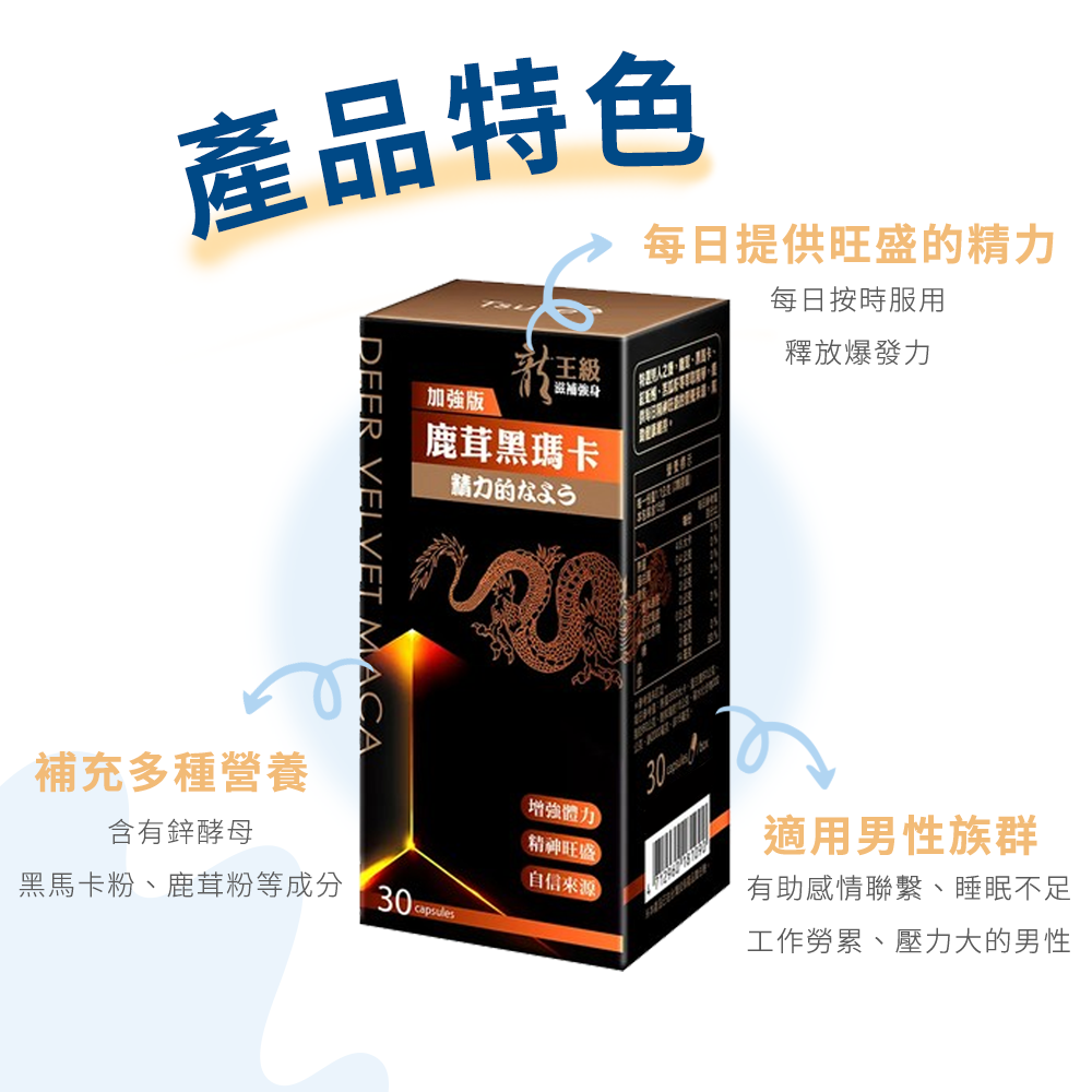 Tsuie 日濢 加強版鹿茸黑瑪卡是一款專為現代男性設計的保健食品,每盒包含30顆膠囊。這款產品結合了鹿茸、黑瑪卡等多種珍貴成分,旨在高效補充男性所需的營養,維持正常生理機能,讓您精力充沛,自信滿滿。其高效力配方能快速吸收,有助於舒緩疲勞、提升體力,特別適合工作繁忙、壓力大的男性。無論是上班族、職場爸爸還是需要維持感情的中高年父親,都能從中受益,重拾活力,展現男性魅力。