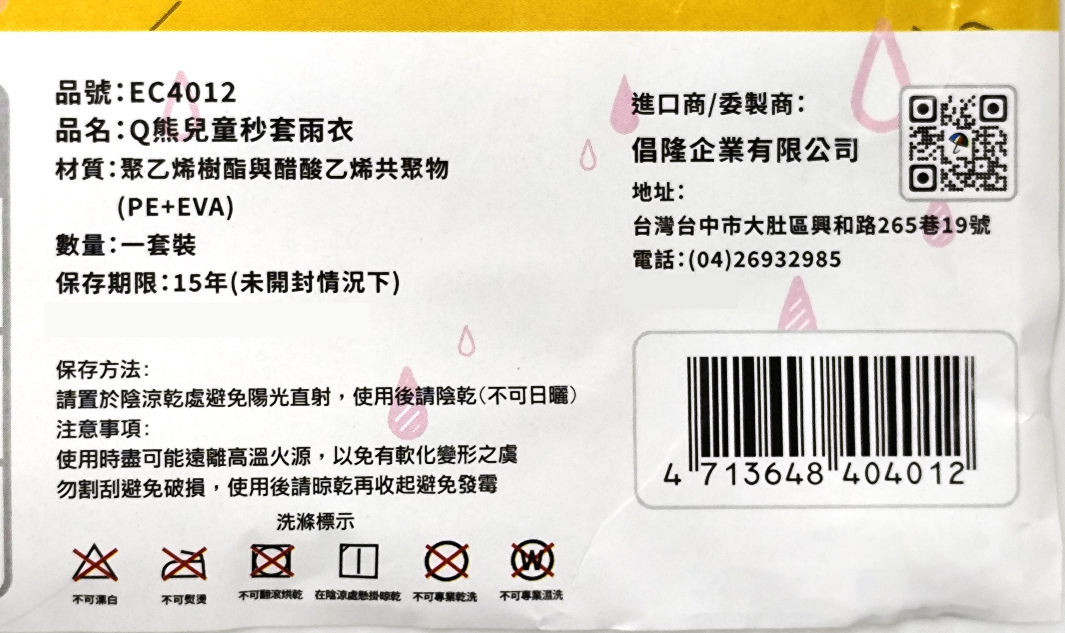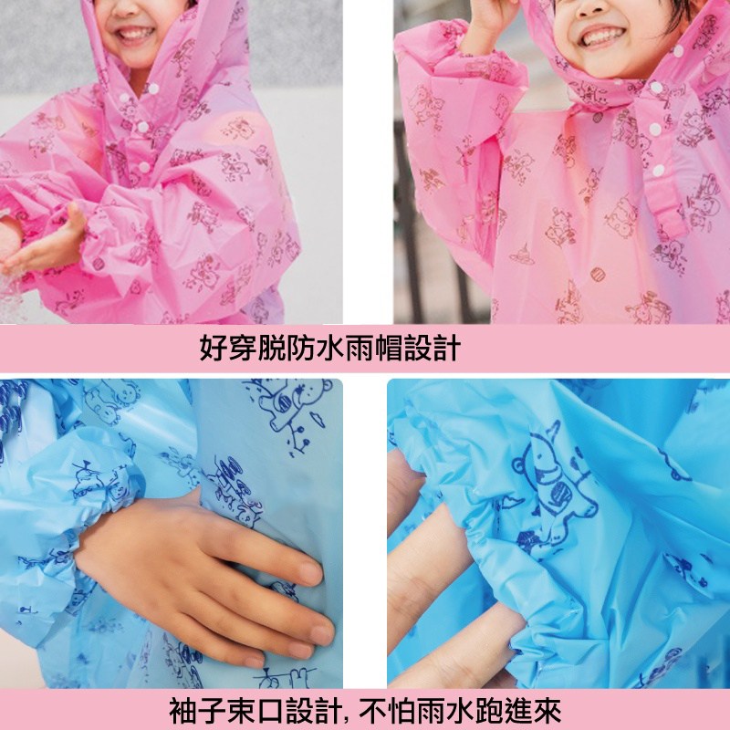- 可愛Q熊圖案,讓孩子在雨天也能開心穿搭,增添童趣。