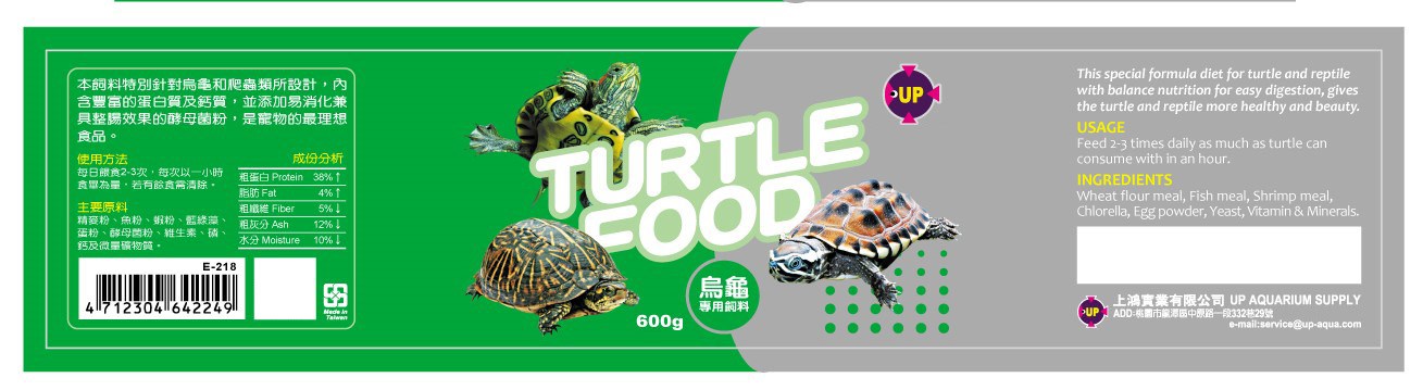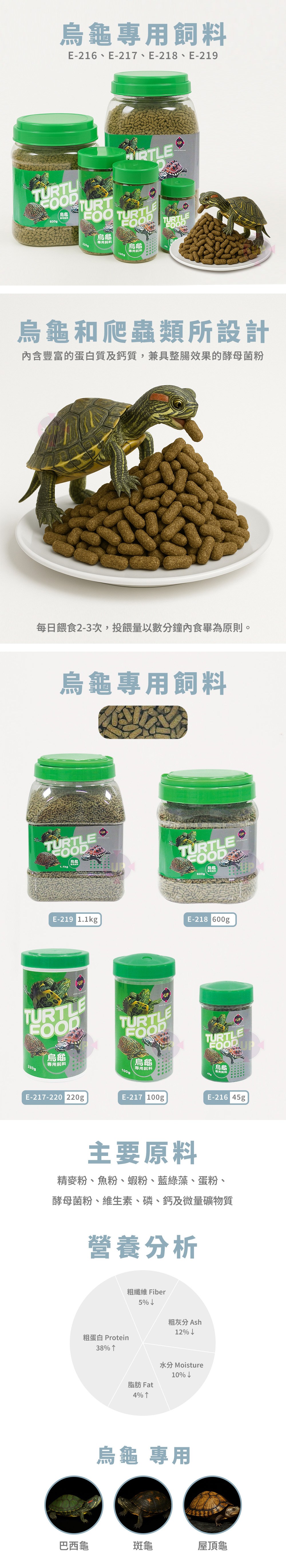 - 本飼料特別為烏龜設計,提供均衡營養,促進消化,讓您的烏龜更健康美麗。