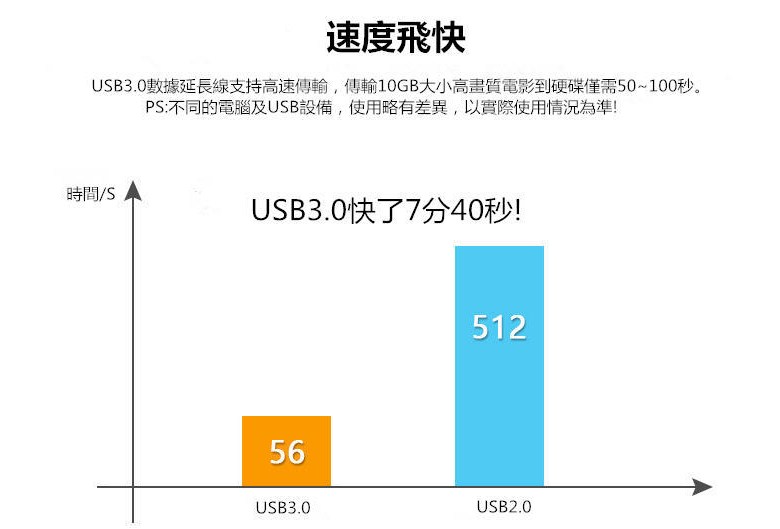 USB 3.0 母對公延長線 高速傳輸 藍色 耐用, 1個, 30-726(3m)