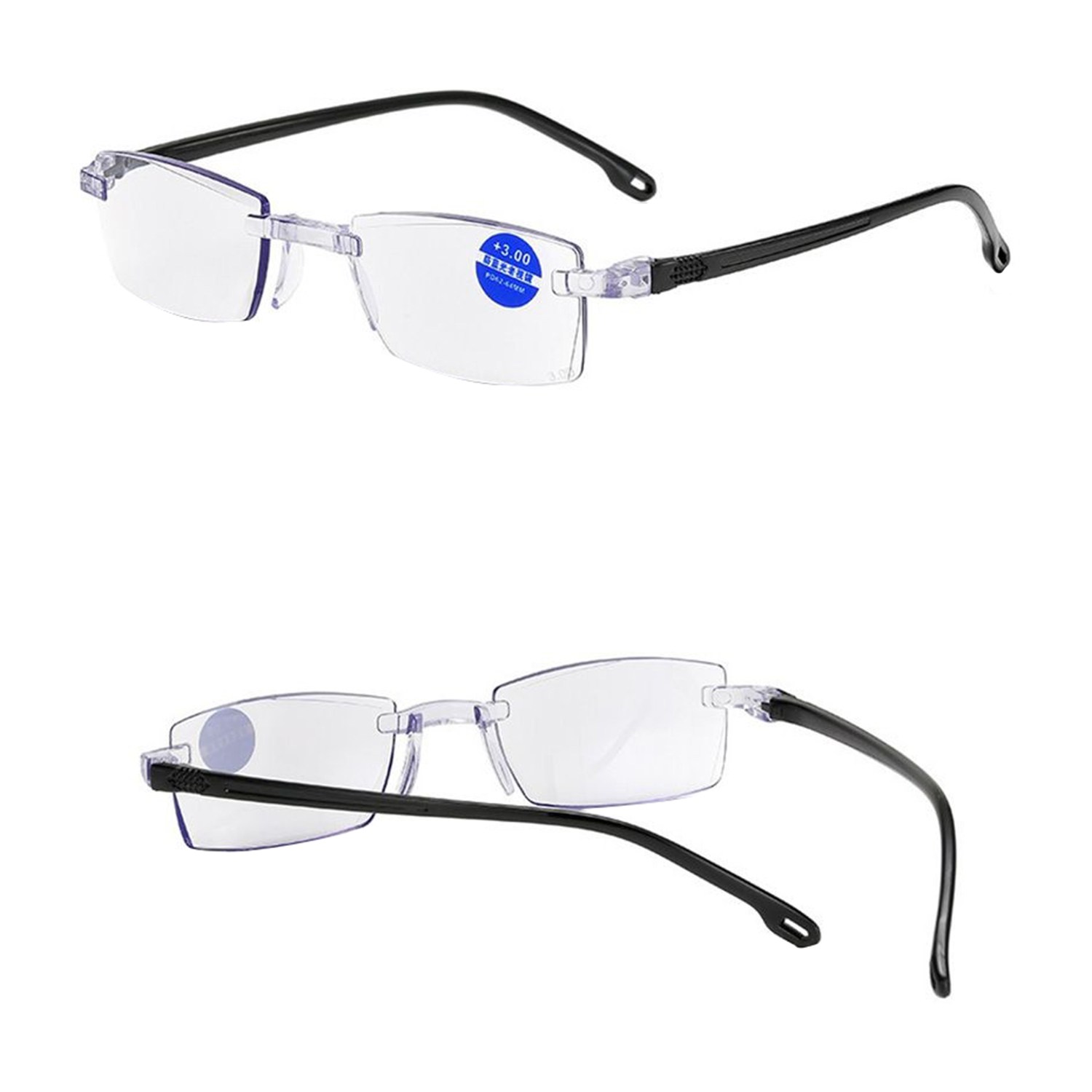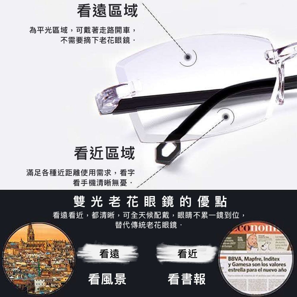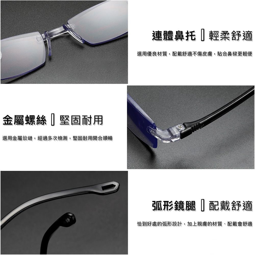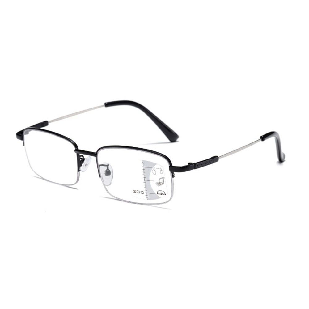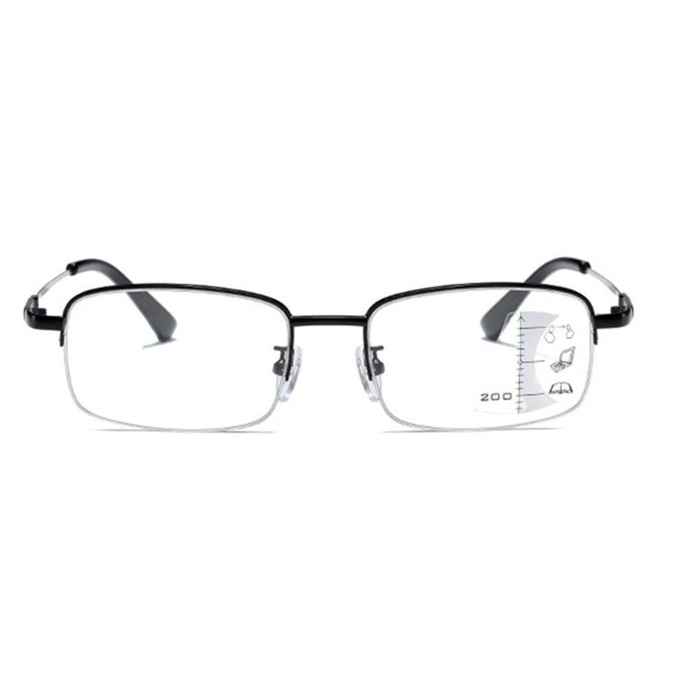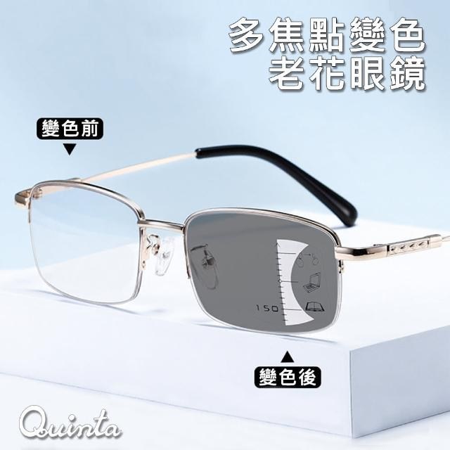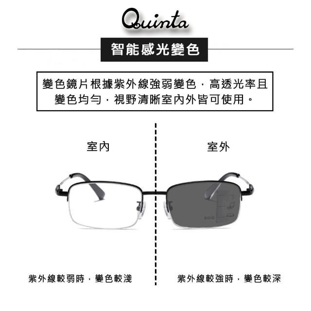 UV400 漸進多焦點防藍光老花眼鏡 智能變色 抗紫外線 記憶鈦 QTPM3039B 100度, 132mm, 黑銀框, 1件