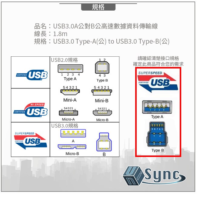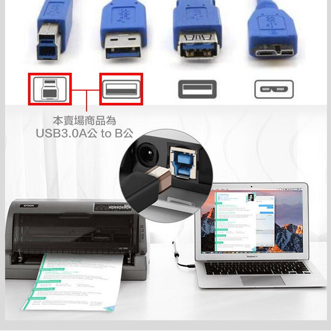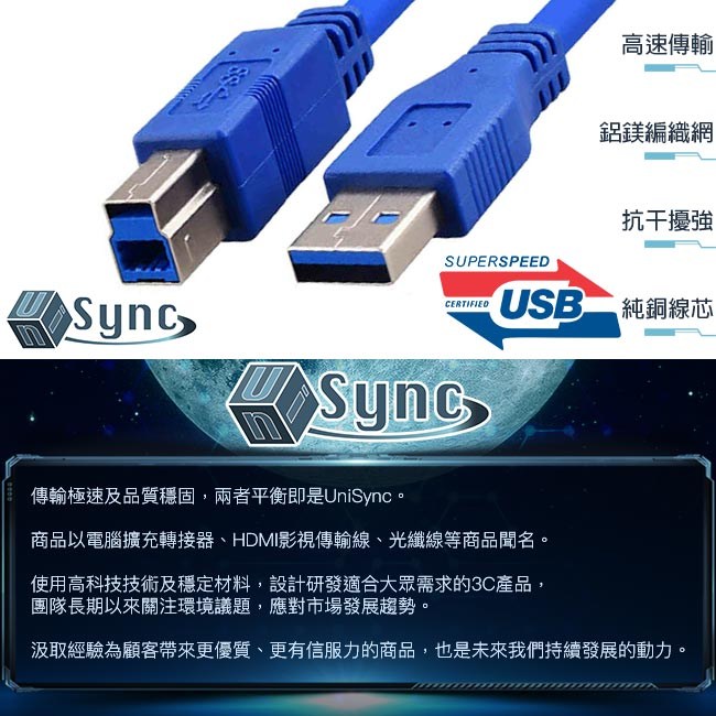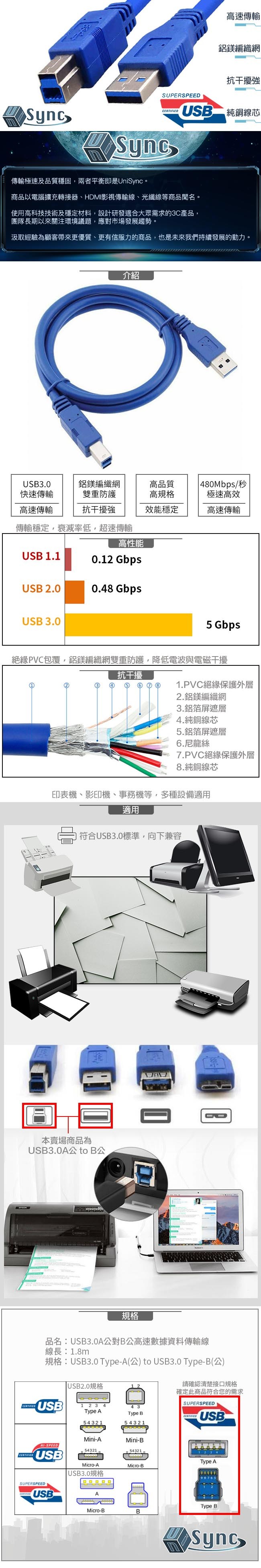 UniSync USB 3.0 A 公對 B 公高速數據傳輸線,是您連接電腦與印表機、掃描器等設備的理想選擇。這條 1.8 公尺長的藍色傳輸線,採用高品質材料製成,確保高速穩定的數據傳輸,讓您輕鬆完成文件傳輸和列印工作。USB 3.0 技術提供高達 5Gbps 的傳輸速度,相容於各種 USB 設備,讓您享受更快速、更有效率的數據傳輸體驗。無論是辦公室還是家庭使用,UniSync USB 3.0 傳輸線都能滿足您的需求,讓您的工作更加順暢。