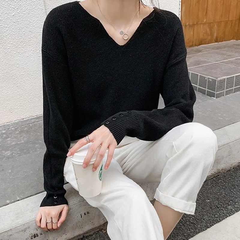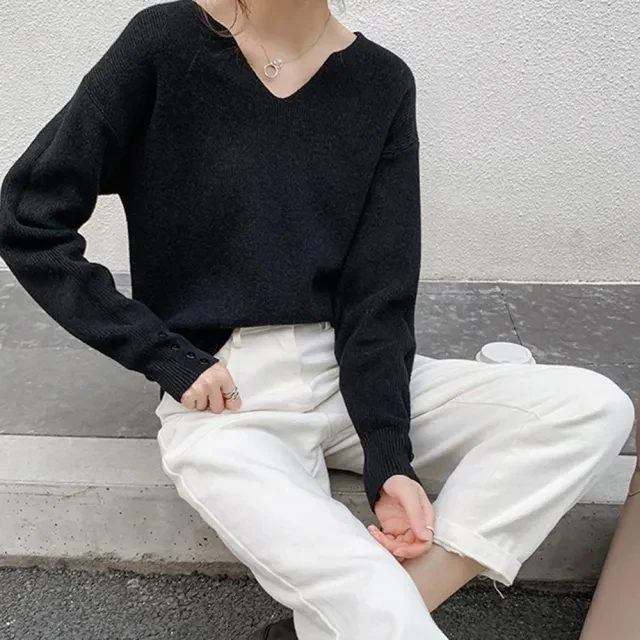 這款V領針織長袖衫,簡約而時尚,是您衣櫥裡的必備單品。經典的黑色系,輕鬆搭配各式下裝,展現您的個人風格。V領設計巧妙修飾頸部線條,更顯優雅氣質。針織材質柔軟舒適,給您帶來極佳的穿著體驗。袖口處的精緻鈕扣設計,增添細節感,讓整體造型更具層次。尺寸方面,胸寬42cm、全長60cm、肩寬47cm、袖長59cm,請參考尺寸選購,讓您穿得合身又舒適。