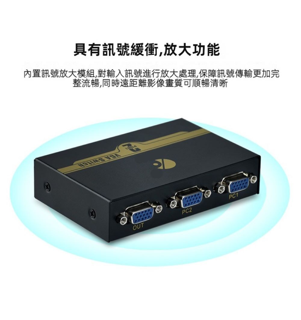 這款VGA 1進2出多功能分配器切換器,型號V52,採用鍍鎳合金與ABS材質,堅固耐用。它不僅是VGA切換器,也是VGA分配器,獨特的雙向切換功能滿足不同使用情境。內置訊號放大模組,確保訊號傳輸的完整與流暢,即使遠距離也能保持清晰的影像畫質。支援遙控切換,操作簡便,遙控距離可達10公尺,同時保留手動切換功能。高達2560x1600的分辨率,讓大屏展示更加清晰動人。