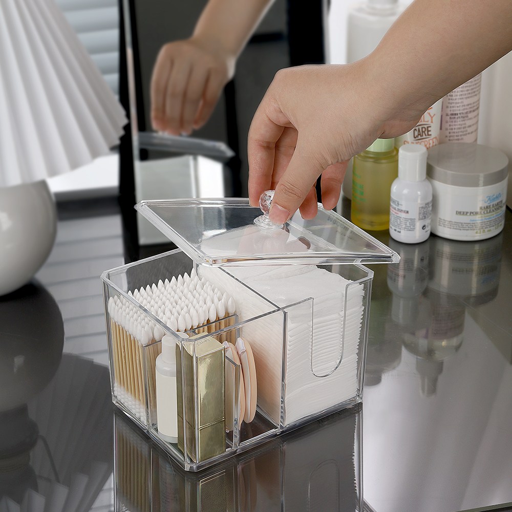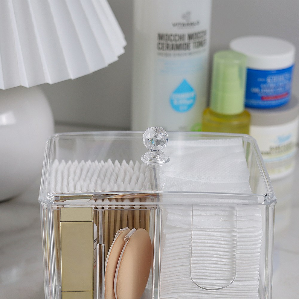 - 透明設計一目瞭然,輕鬆找到所需化妝棉,節省寶貴的梳妝時間。