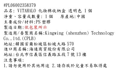 VITAHALO透明化妝棉收納盒,是您化妝台上的完美收納幫手。採用優質PS塑膠製成,堅固耐用且易於清潔,讓您安心使用。11公分的高度和14.5公分的橫向長度,提供足夠的空間收納化妝棉、棉花棒、粉撲等各式美妝小物,保持桌面整潔有序。透明的設計讓您一目瞭然,輕鬆找到所需的物品,節省寶貴的時間。有了這款收納盒,告別雜亂,享受更高效、更愉悅的化妝體驗。