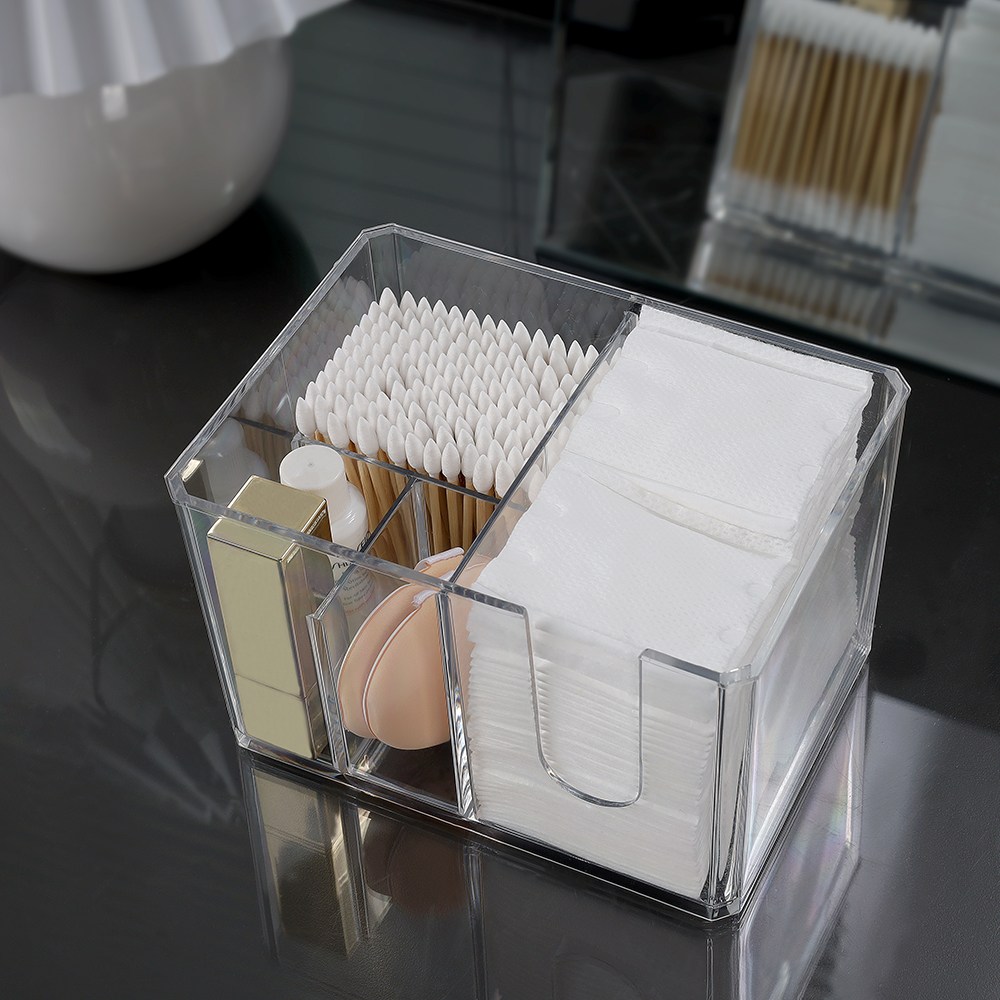 - 多格分區收納設計,化妝棉、棉籤、粉撲等分類放置,告別雜亂桌面。