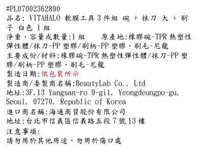 VITAHALO 軟膜工具三件組是您在家享受專業級面膜護理的完美選擇。這套白色工具組包含一個碗、一支抹刀和一支刷子,讓您輕鬆混合和塗抹面膜,告別傳統手動調製的麻煩。碗採用TPR熱塑性彈性體製成,耐用且易於清潔;抹刀和刷柄則使用PP塑膠,輕巧好握;刷毛選用尼龍材質,柔軟親膚,確保面膜均勻塗抹於臉部,提升護膚效果。無論是混合面膜粉、乳霜還是泥狀面膜,這套工具都能讓您體驗更精準、衛生的面膜護理過程,讓每一次的居家SPA都充滿儀式感。