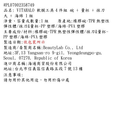 VITAHALO 軟膜工具4件組是您在家享受專業級面膜護理的完美選擇。這套工具包含一個碗、一個量杯、一個抹刀和一個海綿,讓您輕鬆混合和塗抹面膜,享受SPA級的體驗。量杯確保您每次都能準確測量所需份量,避免浪費。抹刀讓您均勻塗抹面膜,而柔軟的海綿則能溫和卸除面膜,呵護您的肌膚。無論是混合、塗抹還是卸除面膜,這套工具都能讓您的護膚過程更加輕鬆、衛生和高效。