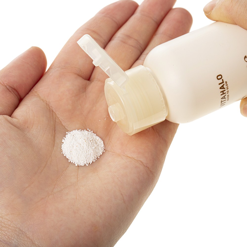 VITAHALO 酵素潔顏粉,溫和清潔肌膚,展現自然光澤,讓肌膚恢復光滑細緻。其溫和配方適合各種膚質,即使是敏感肌也能安心使用。使用方法簡單,只需取適量潔顏粉於手心,加水搓揉起泡後輕輕按摩臉部,再以清水洗淨即可。每天使用,讓您的肌膚煥發健康光彩。