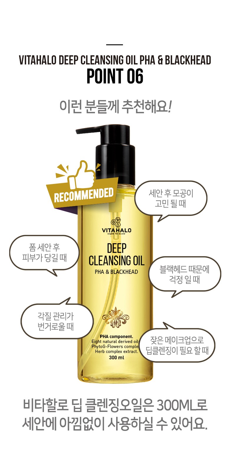 VITAHALO PHA深層卸妝油能溫和且有效地卸除彩妝及髒汙,讓肌膚徹底潔淨。富含多種植物油,在卸妝的同時滋養肌膚,維持肌膚的保濕度,洗後不乾澀緊繃。PHA成分能幫助去除老廢角質,改善毛孔問題,使肌膚更加光滑透亮。使用後,肌膚感覺清爽舒適,展現自然健康的光澤。每天使用,讓肌膚維持在最佳狀態,告別毛孔粗大與膚色暗沉的困擾。