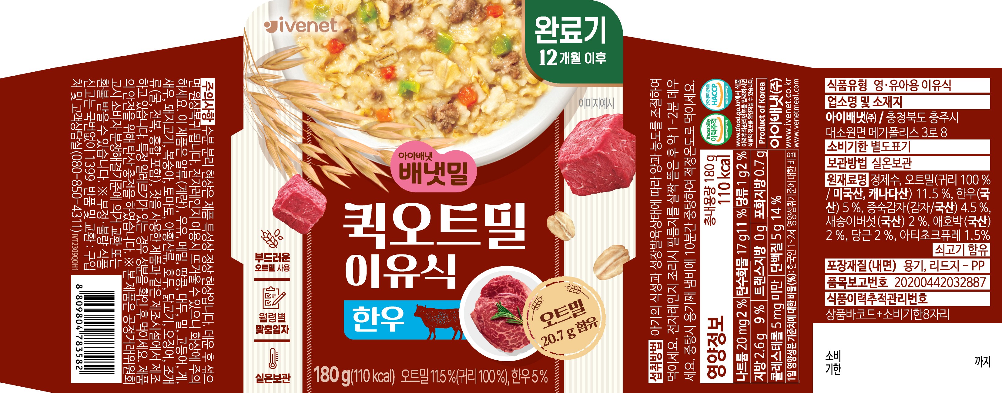 - 嚴選韓牛搭配燕麥,提供寶寶成長所需的營養,補充能量,健康滿分。