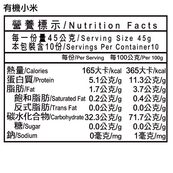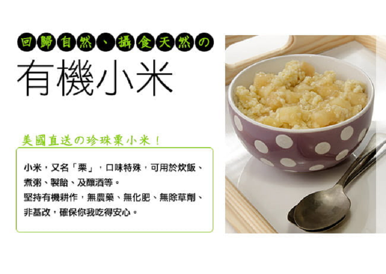 米森100%有機小米,來自美國的純淨土地,無農藥、無化肥、無除草劑,確保您和家人能安心享用。小米口感獨特,營養豐富,富含蛋白質和膳食纖維,適合各年齡層食用。無論是煮粥、煮飯,還是製作點心,都能為您帶來健康美味的一餐,讓您吃得安心,活得健康。